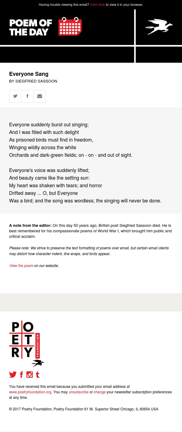 Download Siegfried Sassoon Poem Everyone Sang Pics. Siegfried sassoon, born in england in 1886, is best known for his poems inspired by his experiences in world war i. Siegfried sassoon is best remembered for his angry and compassionate poems about world war i, which brought him public and critical acclaim.